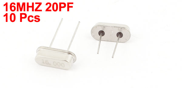 Product Name Crystal Oscillator Output Frequency 16MHz Package Type HC-49S Frequency Tolerance ±20ppm Load Capacitance 20PF Pins Number 2 Color Silver Tone Each Size 16 x 10.5 x 4.5mm/ 0.63" x 0.41" x 0.18"(H*L*W) Weight 7g Package Content 10Pcs x Crystal Oscillators - Reviews