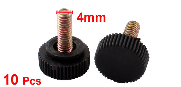 10 Pcs 16mm Height 4x10mm Male Thread Screw on Design Straight Knurled Knob