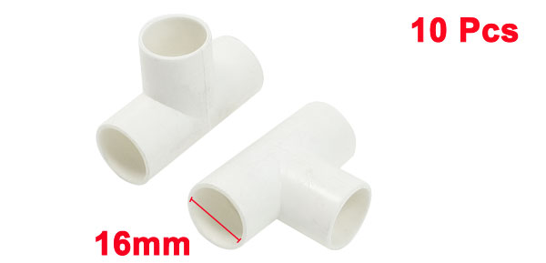 Product Name Pipe Connector Type Tee Shape Hole Inner Dia. 16mm Overall Size 45 x 19 x 34mm/ 1.8" x 0.7" x 1.3" (L*W*T) Material PVC Color White Net Weight 72g Package Content 10 x Pipe Connector - Reviews