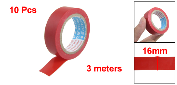 10 Pcs 16mm Width Red PVC Electrical Wire Insulating Tape Roll