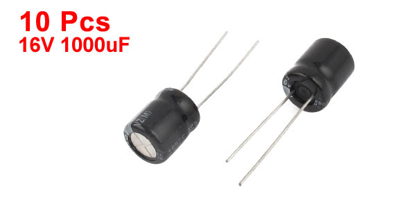 Product Name Electrolytic Capacitor Type Radial Lead Temperature -40 to +105C Voltage Rated 16V Capacitance 1000uF Tolerance +/-20% Body Size 10 x 13mm / 0.4"x 0.5" (D*L) Lead Dia 0.6mm/0.02" Dielectric Material Aluminum Weight 17g Color Black Package Content 10 Pcs x Electrolytic Capacitor - Reviews