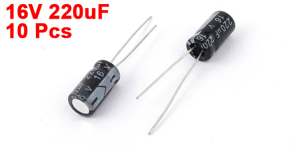 Product Name Electrolytic Capacitor Type Radial Lead Temperature -40 to +105C Voltage Rated 16V Capacitance 220uF Tolerance +/-20% Body Size 6 x 12mm / 0.24"x 0.5" (D*L) Lead Dia 0.6mm/0.02" Dielectric Material Aluminum Weight 7g Color Black Package Content 10 Pcs x Electrolytic Capacitor - Reviews