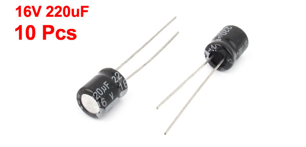 Product Name Electrolytic Capacitor Type Radial Lead Temperature -40 to +105C Voltage Rated 16V Capacitance 220uF Tolerance +/-20% Body Size 6 x 8mm / 0.24"x 0.31" (D*L) Lead Dia 0.6mm/0.02" Dielectric Material Aluminum Weight 6g Color Black Package Content 10 Pcs x Electrolytic Capacitor - Reviews