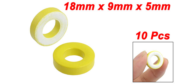 10 Pcs 18mm x 9mm x 5mm Yellow White Iron Core Power Inductor Ferrite Ring