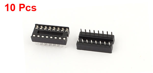 Product Name DIP IC Socket Pitch 2.54mm / 0.1" Row to Row Distance(Approx) 8mm / 0.3" Number of Pins 16 Each Size(Approx) 20 x 10 x 8mm / 0.8" x 0.4" x 0.3" (L*W*H) Material Plastic, Metal Color Black, Silver Tone Net Weight 14g Package Content 10Pcs x DIP IC Socket