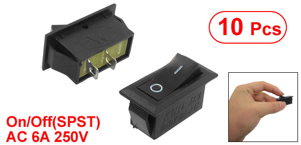 Item Name Rocker Switch Type On/Off(SPST) Voltage & Current AC 6A 250V Size 32 x 16 x 25mm / 1.3" x 0.63" x 1"(L*W*H) Mount Hole Diameter 27 x 11mm / 1.1" x 0.43"(L*W) Color Black Material Plastic & Metal Total Weight 37g Package Content 10 x Rocker Switch - Reviews