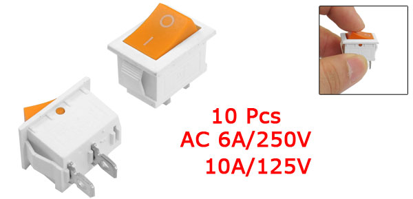 10 Pcs 2 Pin SPST Orange Button On/Off Rocker Switch AC 6A/250V 10A/125V