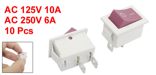 10 Pcs 2 Pin SPST Purple Button On/Off Rocker Switch AC 6A/250V 10A/125V