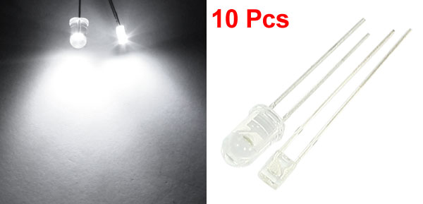 10 pcs 2 Pin Terminals Round Head Superbright White LED Light Diodes