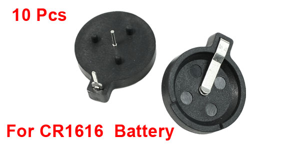Product Name Button Battery Holder Fit Battery Model CR1616 (Not Included Here) Material Plastic, Metal Body Size 18 x 3mm / 0.7" x 0.1"(Max D*H) Pin Quantity 2(1 for "-", 1 for "+") Distance Between Pins 11mm / 0.43" Color Black Net Weight 13g Package Content 10 Pcs x Button Battery Holder - Reviews