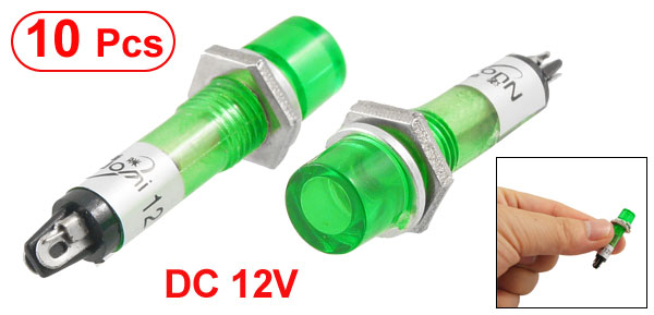 10 Pcs 2 Pins Terminals Green Light Signal Indicator Lamp DC 12V Hmpdk