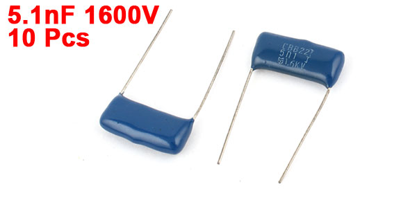 10 Pcs 2 Terminals Lead Polyester Film Capacitors CBB 5.1nF 1600V