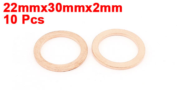 10 Pcs 22mmx30mmx2mm Flat Copper Crush Washer Sealing Ring Gasket