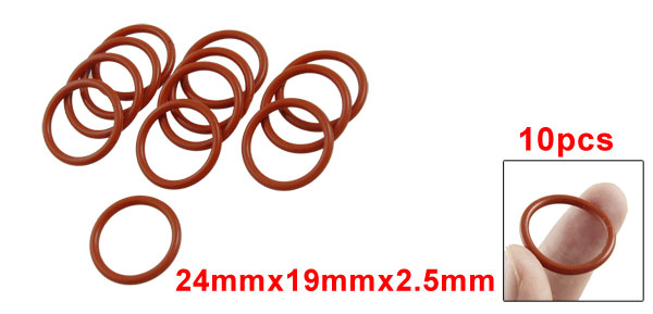 10 Pcs 24mm OD 2.5mm Thickness Red Silicone O Ring Oil Seals
