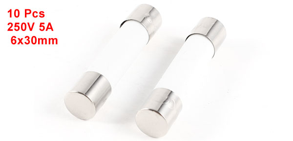 Product Name Ceramic Fuse Type Fast Blow Rated Voltage 250V Rated Current 5A Total Size 6 x 30mm/ 0.24" x 1.2" (D*L) Material Metal, Ceramic, Electronic Parts Main Color White, Silver Tone Weight 18g Package Content 10 x Ceramic Fuses - Reviews