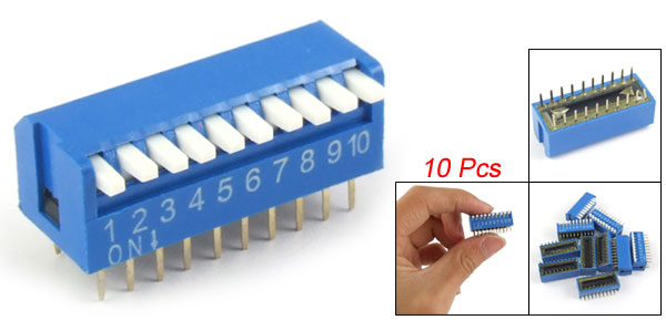 10 Pcs 2.54mm Pitch 10 Position Slide Type DIP Switch Blue