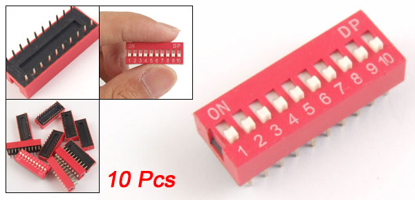 10 Pcs 2.54mm Pitch 10 Position Slide Type DIP Switch Red Engcr