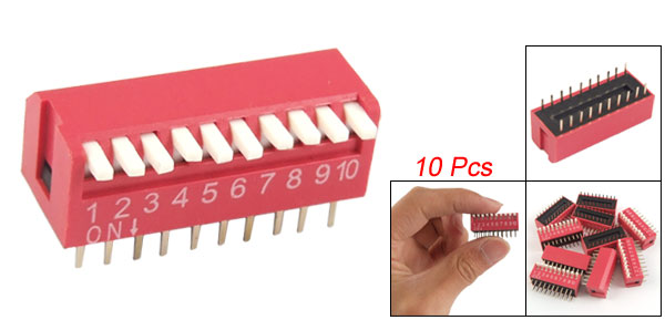 10 Pcs 2.54mm Pitch 10 Position Slide Type DIP Switch Red Qempu