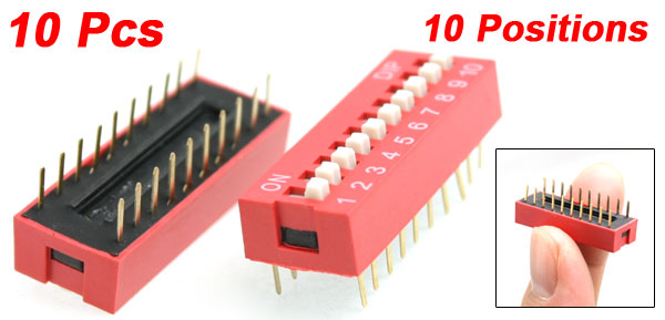 10 Pcs 2.54mm Pitch 10 Position Slide Type DIP Switch Red