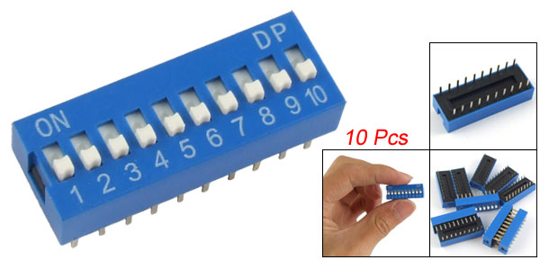 10 Pcs 2.54mm Pitch 10 Positions Slide Type DIP Switch Blue