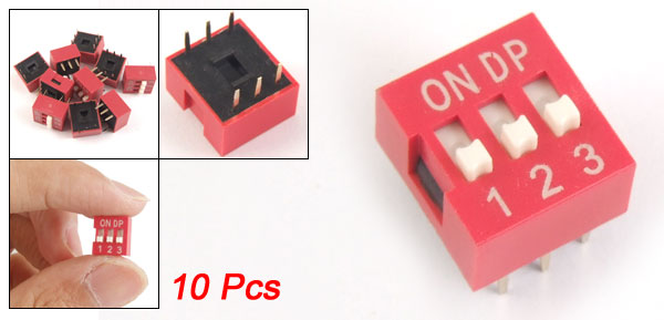 Product Name DIP Switch Type 3 Position Slide Type Poles 2 x 3 Pins(2 rows) Pitch 2.54mm Non-Switching Rating 100mA DC 50V Switching Rating 25mA DC 24V Contact Resistance 50mΩ 24VDC/100mA (at initial) 100mΩ typical,24VDC/100mA (after life test) Dimension 1 x 0.9 x 1.1cm/0.39" x 0.35" x 0.43"(L*W*H) Material Plastic, Electric Parts Main Color Red Net Weight 8g Package Content 10 Pcs x DIP Switches - Reviews