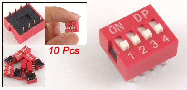 10 Pcs 2.54mm Pitch 4 Position Slide Type DIP Switch Red