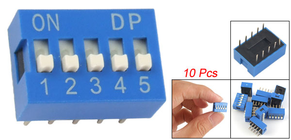 10 Pcs 2.54mm Pitch 5 Position Slide Type DIP Switch Blue