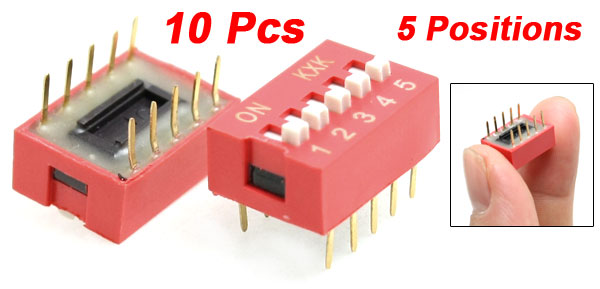 10 Pcs 2.54mm Pitch 5 Position Slide Type DIP Switch Red Ympno