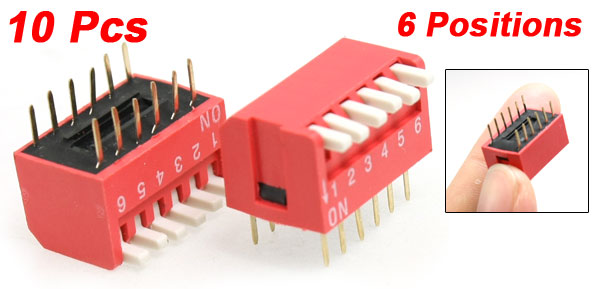 10 Pcs 2.54mm Pitch 6 Position Piano Type DIP Switch Red
