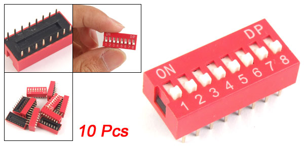 10 Pcs 2.54mm Pitch 8 Position Piano Type DIP Switch Red