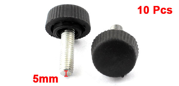 10 Pcs 25mm Height 5x15mm Male Thread Screw on Design Straight Knurled Knob
