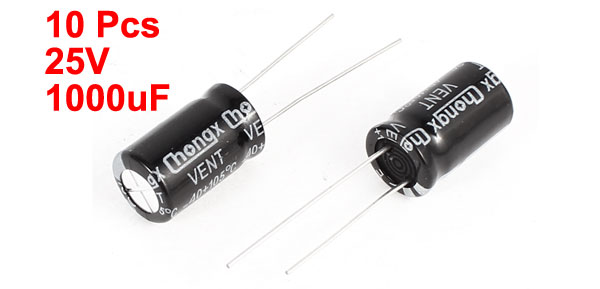 10 Pcs 25V 1000UF Radial Cylindrical Aluminum Electrolytic Capacitor