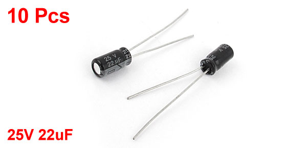 Product Name Electrolytic Capacitor Type Radial Lead Temperature -40 to +105C Voltage Rated 25V Capacitance 22uF Tolerance +/-20% Body Size 4 x 8mm / 0.16"x 0.31" (D*L) Lead Dia 0.6mm/0.02" Dielectric Material Aluminum Weight 4g Color Black Package Content 10 Pcs x Electrolytic Capacitor - Reviews