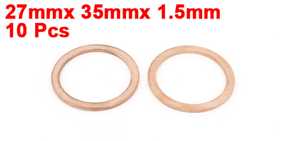 10 Pcs 27mm Inner Dia. Flat Copper Washer Ring Seal Spacer Gasket