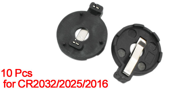Product Name Button Battery Holder Fit Battery Model for CR2032/2025/2016 Battery (Not Included Here) Material Plastic, Metal Body Size 28 x 23 x 1.2mm/ 1.1" x 0.9" x 0.47"(L*D*T) Inner Diameter 20mm / 0.79" Pin Quantity 2(1 for "-", 1 for "+") Distance Between Pins 20mm / 0.79" Color Black Net Weight 20g Package Content 10 Pcs x Button Battery Holder - Reviews