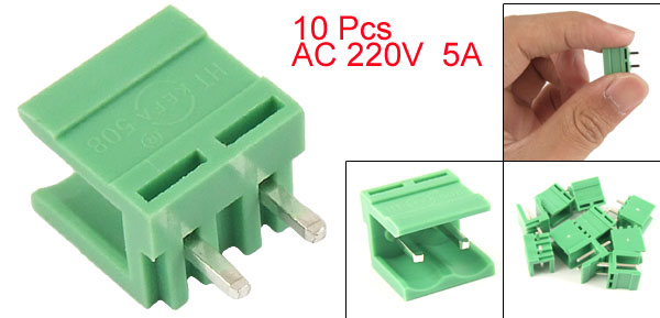 Product Name Pluggable Terminal Block Material Plastic Rated Value AC 220V, 5A Pin Number 2 Pitch 5.08mm/0.2'' Total Size 10 x 8 x 14mm/0.4'' x 0.3'' x 0.6'' (L*W*H) Color Green Weight 7g Package Content 10 x 2P Pluggable Terminal Block - Reviews