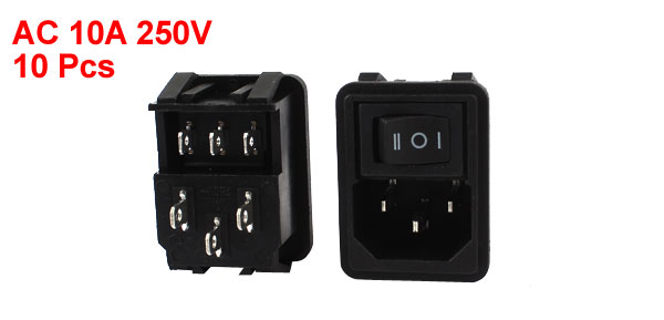 10 Pcs 3 Position 3Pin Rocker Switch IEC320 C14 Inlet Power Socket AC 10A 250V