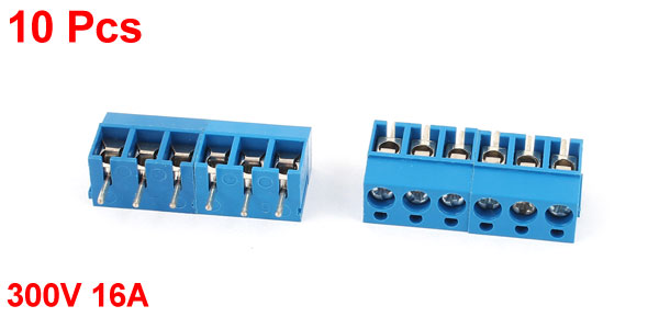 Product Name Screw Terminal Block Pitch 5mm Poles 6P Material Scerws M3, Steel, Zinc Plated Wire Guard Phosphor Bronze, Ni Plated or Stainless Steel Pin Header Brass, Tin Plated Housing PBT, UL94-0 Electrical Rated Voltage 300V Rated Current 16A Withstanding Voltage AC1500V/1Min Wire Range 22-14 AWG Mechanical Temp Range -30C-+120C MAX Soldering +250C for 5 sec Torque 0.5 nm(4.4lb.in) Strip Length 4.5-5mm Color Blue, Silver Tone Weight 69g Package Content 10 x Screw Terminal Block - Reviews