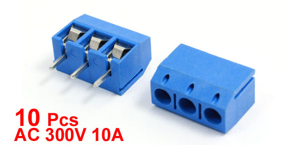 10 Pcs 301-3P 5mm Pitch 3 Pin AC 300V 10A Blue Screw Terminal Block Connectors