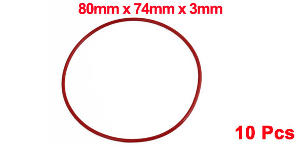 Product Name Rubber O Ring Material Rubber Outside Diameter 80mm/ 3.1" Inside Diameter 74mm/ 2.9" Thickness 3mm/ 0.12" Color Red Weight 11g Package Content 10 x Rubber O Rings - Reviews