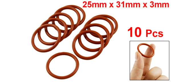 10 Pcs 31mm OD 3mm Thickness Red Silicone O Ring Oil Seals