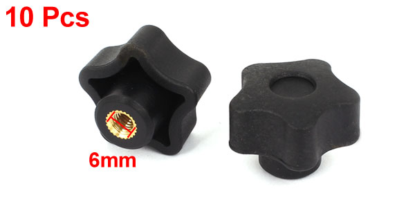 10 Pcs 32mm Dia M6 Thread Black Plastic Screw On Star Head Clamping Knob Grip