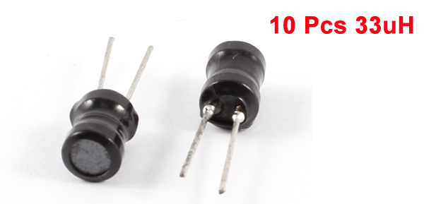 Product Name Inductor Material UL-polyolefin, Metal Inductance 33uH Body Size 6 x 8mm / 0.236" x 0.31"(D*H) Lead Diameter 0.5mm / 0.196" Color Black, Silver Tone Weight 11g Package Content 10 x Inductors - Reviews