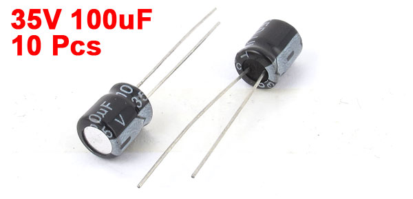 10 Pcs 35V 100uF 105C Radial Lead Electrolytic Capacitor 6mm x 8mm