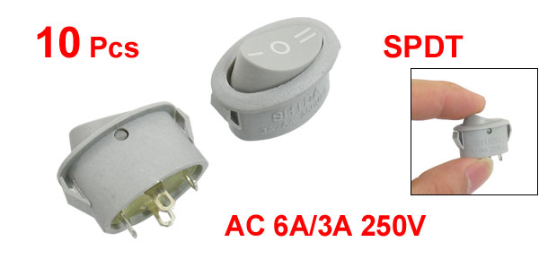 10 Pcs 4 Pin SPDT On/Off/On Oval Rocker Switch AC 3A/6A 250V Gray