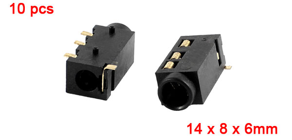 Product Name PCB Mount Audio Jack Type 3.5mm Socket Pin 4 Terminals Material Metal, Plastic, Gold Tone Plated Size 14 x 8 x 6mm / 0.55" x 0.31" x 0.24" (L*W*H) Color Black, Gold Tone Weight 6g Package Content 10 x PCB Mount Audio Jacks - Reviews