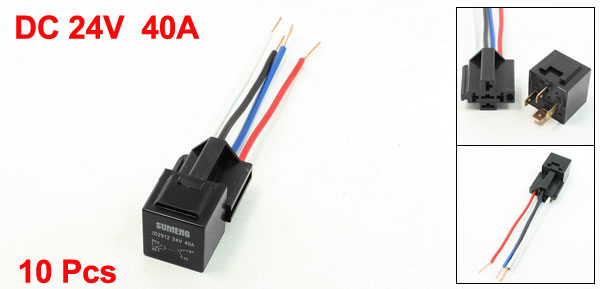 10 Pcs 4 Wire Plastic Socket 4 Pin SPST N/C Car Auto Relay DC 24V Volts 40 Amp
