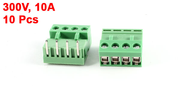10 Pcs 4Pin 5.08mm Spacing PCB Screw Terminal Block Connector 300V 10A AWG14-26