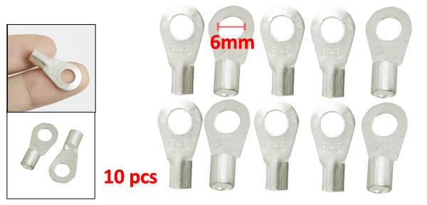 Product Name Non Insulated Ring Terminal Material Copper Fit Stud Diameter 6mm/15/64” Connecting Hole 4mm/5/32" Tip Diameter 11mm/0.43" Total Length 23mm/0.91" Main Color Silver Tone Weight 14g Package Content 10 x Non Insulated Ring Terminal - Reviews