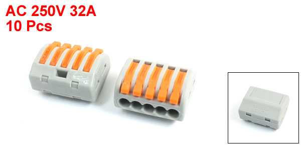 10 Pcs 5 Way Lever Terminal Block AC 250V 32A 0.08-2.5mm2 0.08-4.0mm2